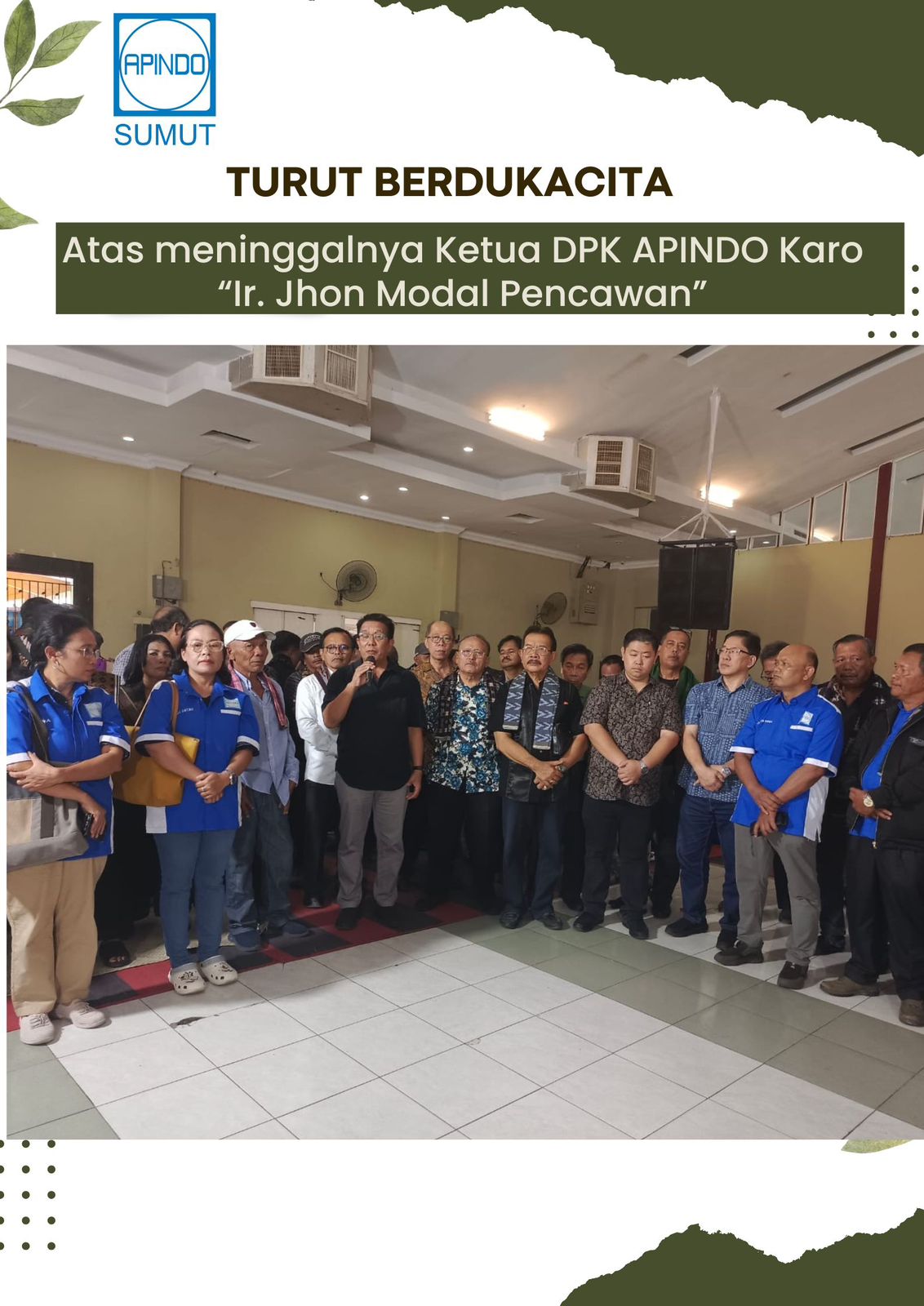 DPP APINDO Sumatera Utara turut berbelasungkawa atas meninggalnya Ketua DPK APINDO Karo, Bapak Ir. Modal Pencawan.